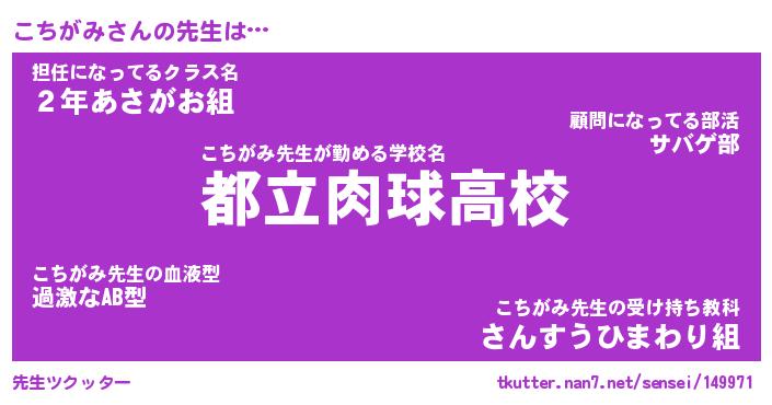 | 意味不明あだ名 | 『ペロリンこちがみ』『永久保存こちがみ』 |