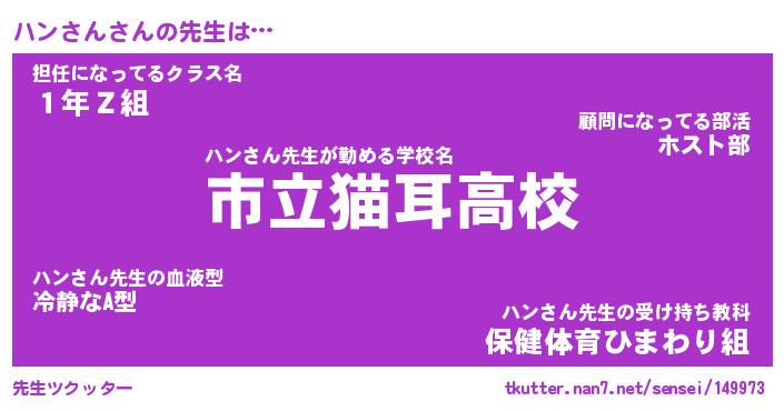 | ヘコむあだ名 | 『ハンにー』『つくし』『ハン太郎』 |