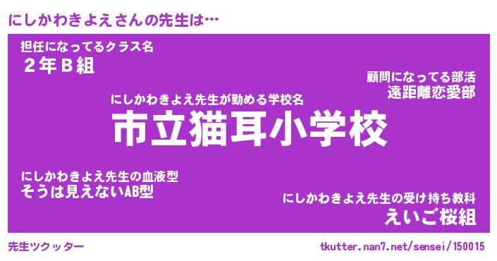 | 恥ずかしいあだ名 | 『プリティーにしかわきよえ』『にしちん』 |