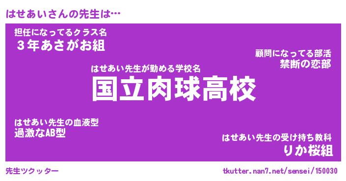 | 意味不明あだ名 | 『ペロリンはせあい』『永久保存はせあい』 |