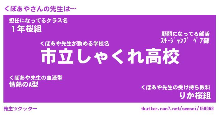 | 伝説のあだ名 | 『伝説のスナイパーくぼあや』 |