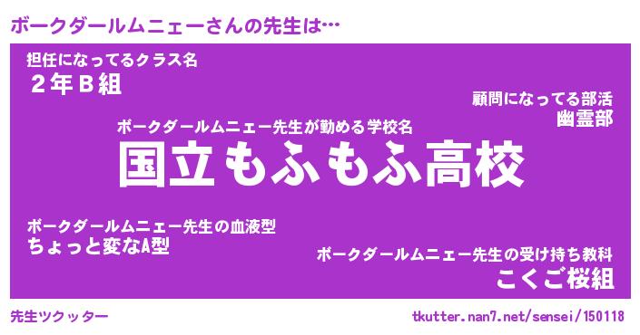 | 男性向けラノベタイトル風あだ名 | 『ボークダールムニェーの憂鬱』 |