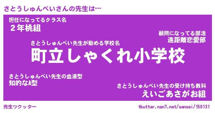 | 意味不明あだ名 | 『ペロリンさとうしゅんぺい』 |