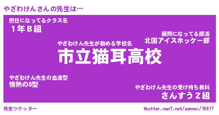 | 男性向けラノベタイトル風あだ名 | 『やざわけんの憂鬱』 |