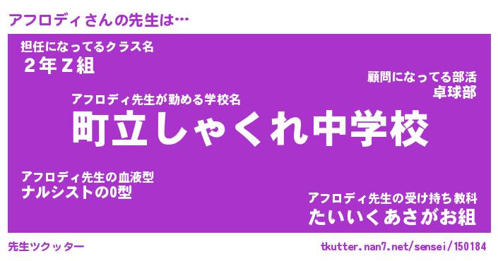 | ファンタジー風あだ名 | 『アフフェル』『エターナルアフロディー』 |