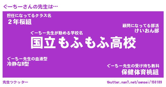| ヘコむあだ名 | 『ぐーにゅー』『なまこ酢』 |