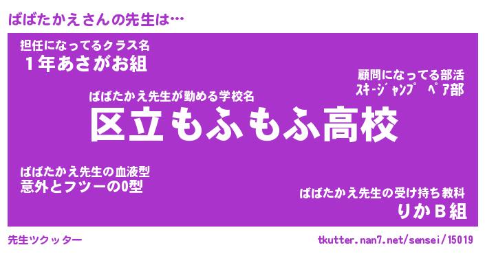 | ファンタジー風あだ名 | 『ババフェル』『エターナルババタカエー』 |