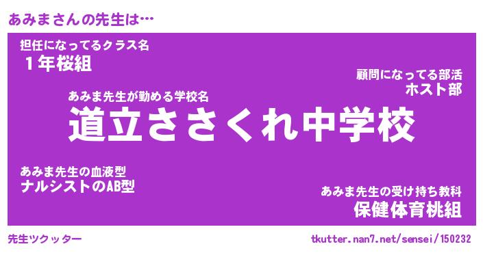 | 伝説のあだ名 | 『不死鳥のスナイパーあみま』 |