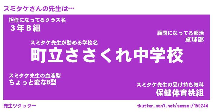 | ヒーロー風カッコイイあだ名 | 『スーパースミタケ』『銀牙騎士スミ』 |
