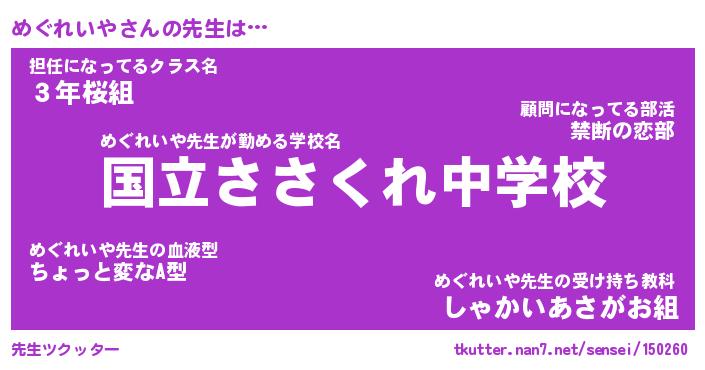 | 伝説のあだ名 | 『伝説のスナイパーめぐれいや』 |