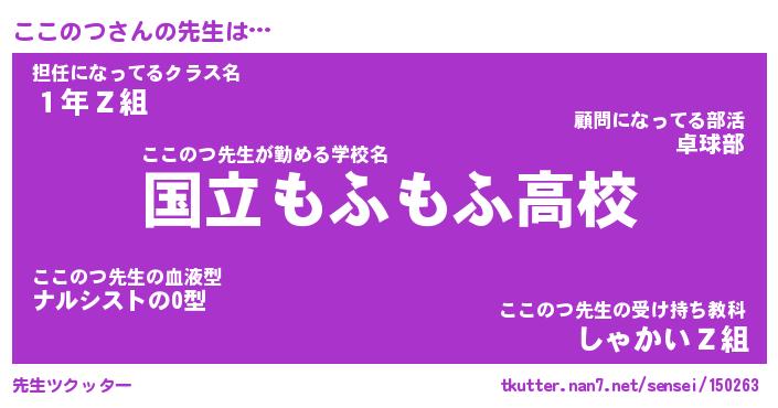 | 意味不明あだ名 | 『ペロリンここのつ』『永久保存ここのつ』 |