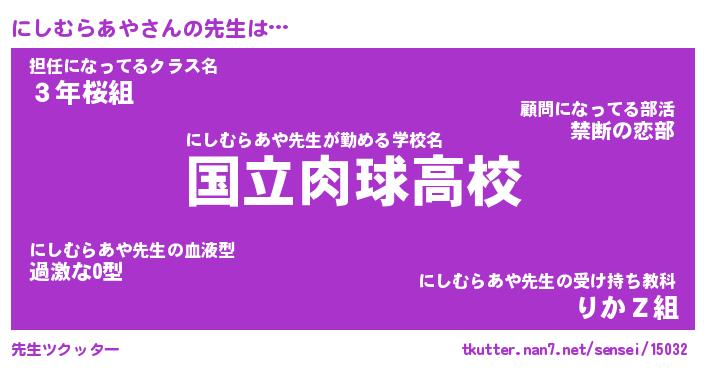 | 肩書あだ名 | 『にしむらあやCEO』『にしむらあや班長』 |