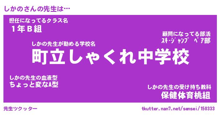 | ヘコむあだ名 | 『しかっふぃ~』『つくし』 |