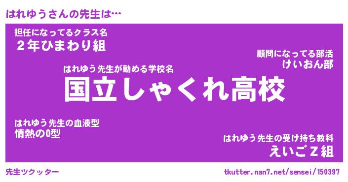 | ファンタジー風あだ名 | 『ハレフェル』『エターナルハレユウー』 |