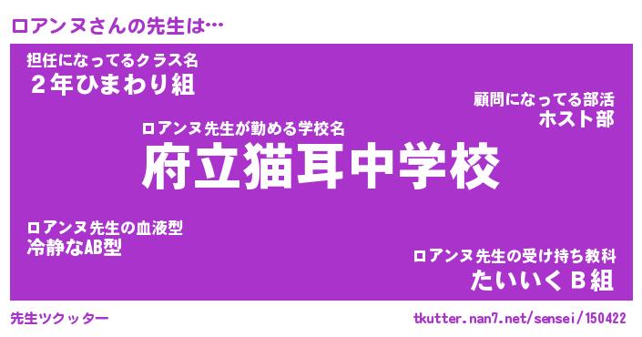 | ヘコむあだ名 | 『ロアにー』『豆乳』『ロアお』 |