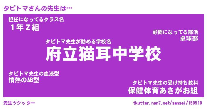 | 肩書あだ名 | 『タピトマ社長』『タピトマ総理大臣』 |