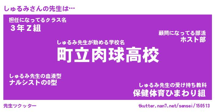 | ヒーロー風カッコイイあだ名 | 『スーパーシュルミ』『炎刃騎士シュ』 |