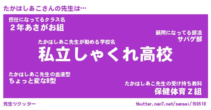 | 伝説のあだ名 | 『伝説のスナイパーたかはしあこ』 |