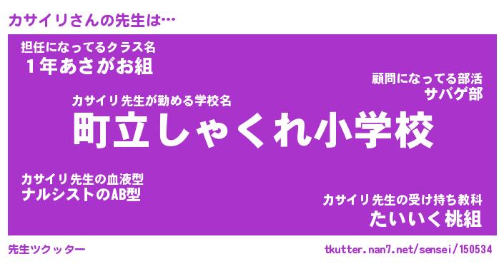 | 意味不明あだ名 | 『ペロリンカサイリ』『永久保存カサイリ』 |