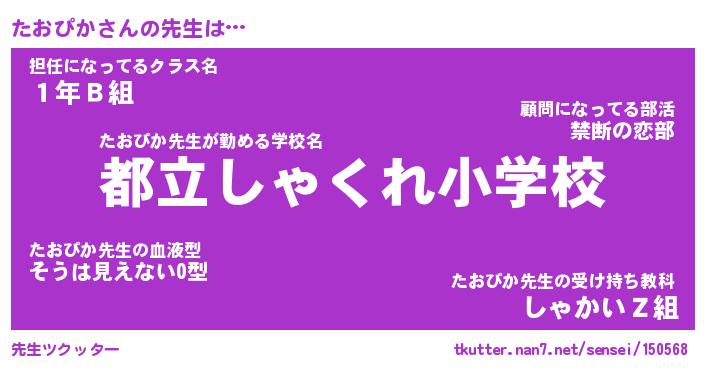 | 意味不明あだ名 | 『ペロリンたおぴか』『永久保存たおぴか』 |
