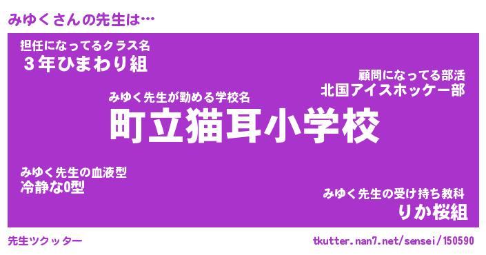 | ファンタジー風あだ名 | 『ミユフェル』『エターナルミユクー』 |