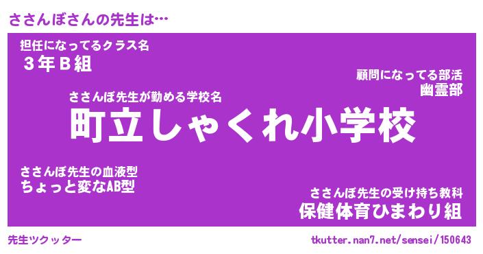 | 意味不明あだ名 | 『ペロリンささんぼ』『永久保存ささんぼ』 |