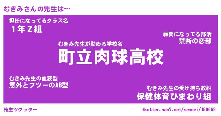 | ファンタジー風あだ名 | 『ムキフェル』『エターナルムキミー』 |