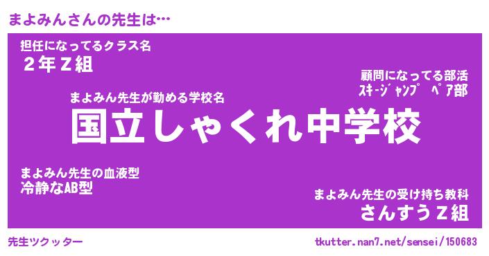 | 伝説のあだ名 | 『伝説のスナイパーまよみん』 |