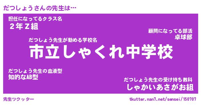 | ヒーロー風カッコイイあだ名 | 『スーパーダツショウ』『暗黒騎士ダツ』 |