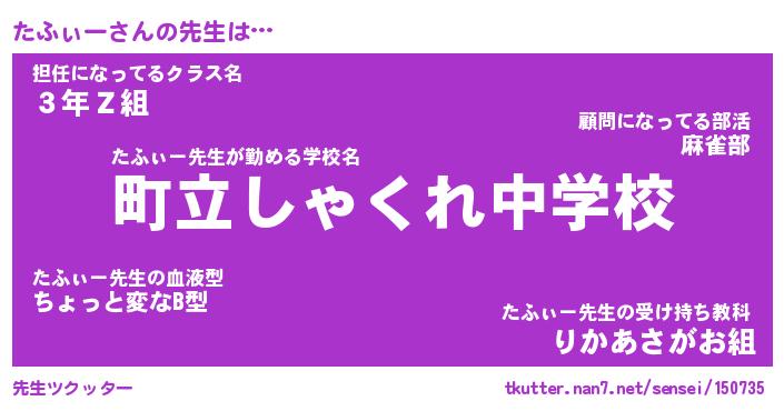 | 意味不明あだ名 | 『ペロリンたふぃー』『永久保存たふぃー』 |