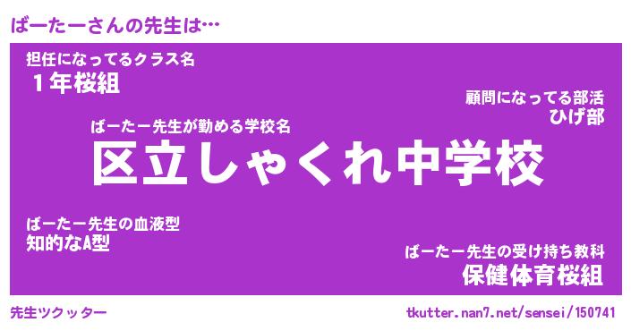 | 意味不明あだ名 | 『ペロリンばーたー』『永久保存ばーたー』 |