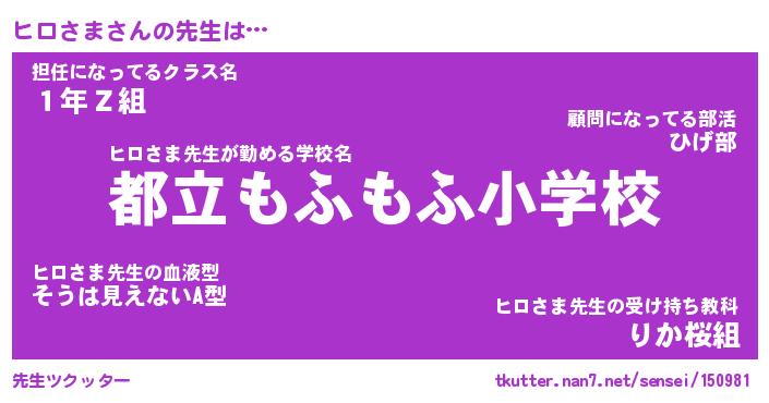 | 意味不明あだ名 | 『ペロリンヒロさま』『永久保存ヒロさま』 |