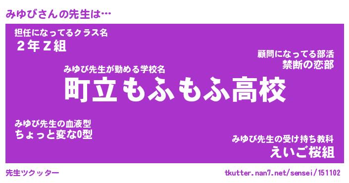 | ファンタジー風あだ名 | 『ミユフェル』『エターナルミユビー』 |
