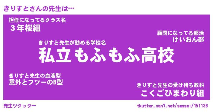 | 意味不明あだ名 | 『ペロリンきりすと』『永久保存きりすと』 |