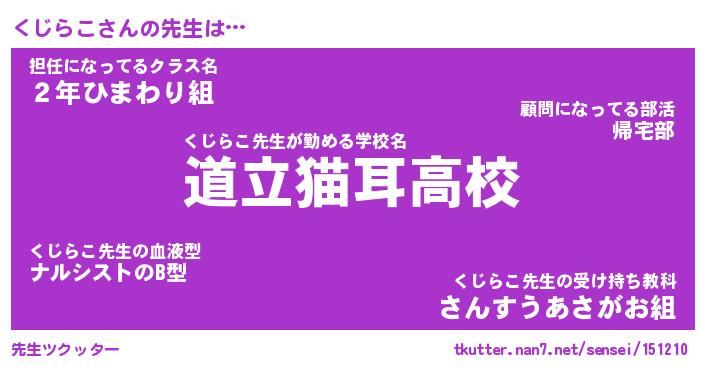 | ヘコむあだ名 | 『くじにー』『豆乳』『くじっぺ』 |