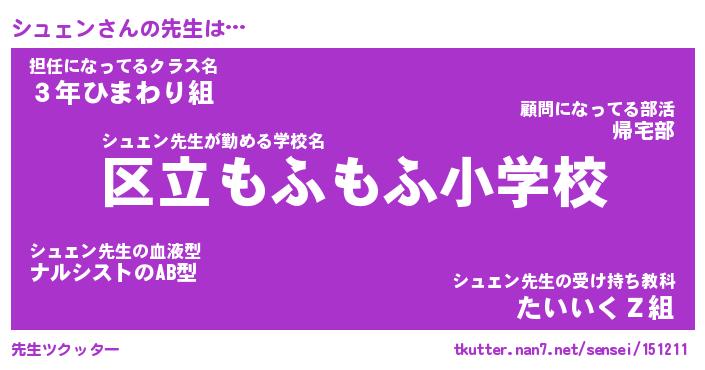 | ヒーロー風カッコイイあだ名 | 『スーパーシュェン』『魔戒騎士シュ』 |