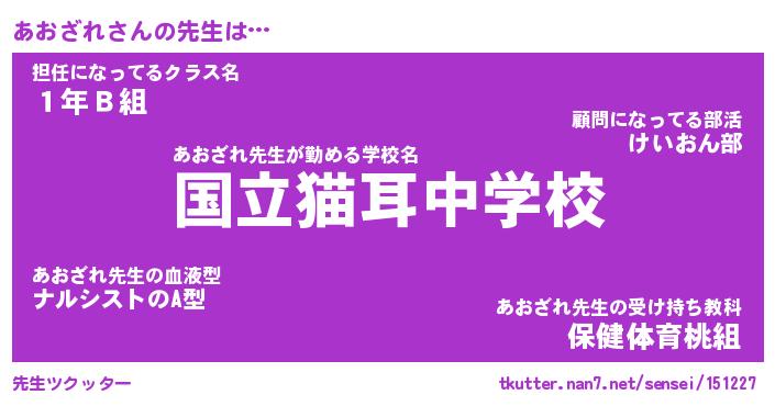 | 意味不明あだ名 | 『ペロリンあおざれ』『永久保存あおざれ』 |