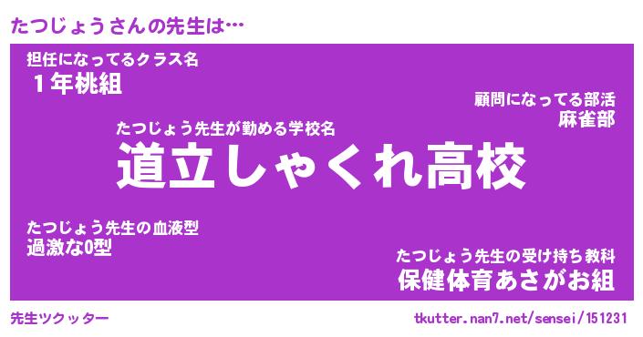 | ファンタジー風あだ名 | 『タツフェル』『エターナルタツジョウー』 |