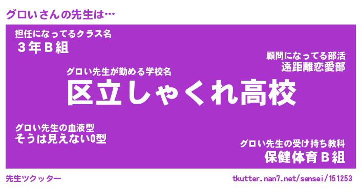 | ヘコむあだ名 | 『グロっふぃ~』『牛乳』『グロお』 |