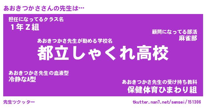 | ヒーロー風カッコイイあだ名 | 『スーパーアオキツカサ』『幻影騎士アオ』 |