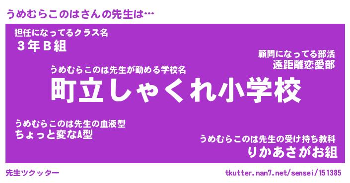| ファンタジー風あだ名 | 『ウメフェル』『ファントムウメス』 |