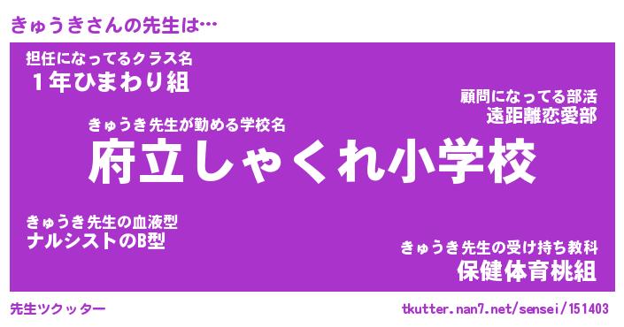 | 意味不明あだ名 | 『ペロリンきゅうき』『永久保存きゅうき』 |