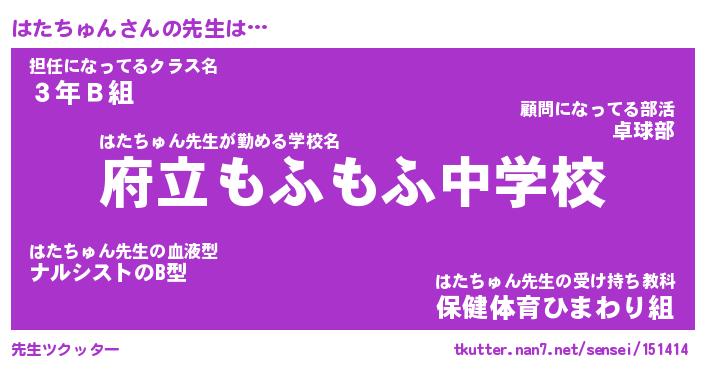 | ファンタジー風あだ名 | 『ハタフェル』『エターナルハタチュンー』 |