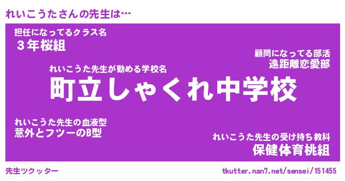 | 肩書あだ名 | 『れいこうた御曹司』『れいこうた副担任』 |