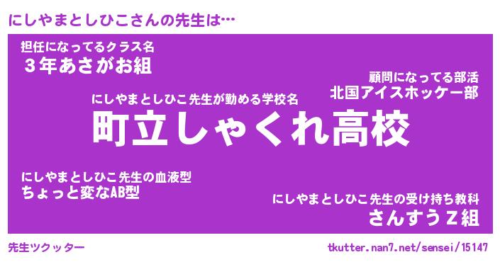 | 伝説のあだ名 | 『封印されしスナイパーにしやまとしひこ』 |