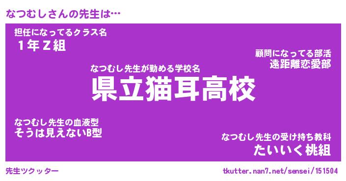 | 意味不明あだ名 | 『ペロリンなつむし』『永久保存なつむし』 |
