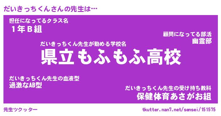 | 男性向けラノベタイトル風あだ名 | 『だいきっちくんの憂鬱』 |