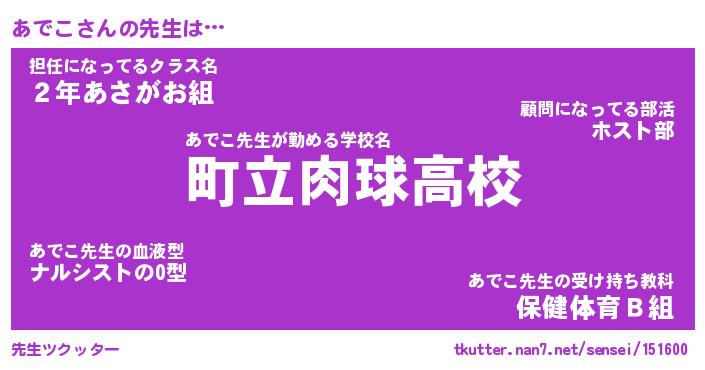 | ヘコむあだ名 | 『あでふぇ~』『なまこ酢』『あでお』 |