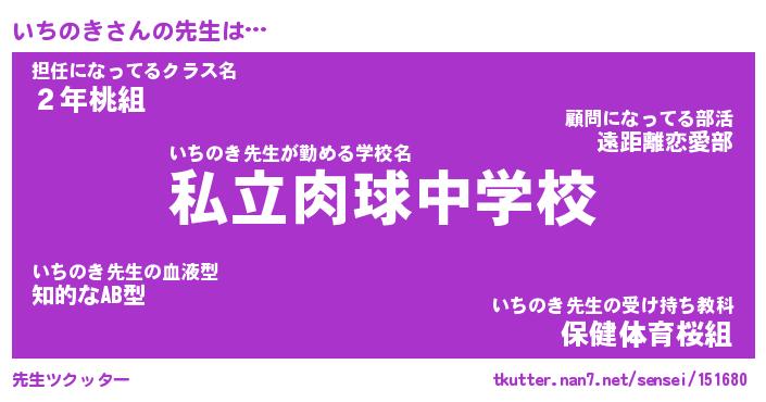 | 意味不明あだ名 | 『ペロリンいちのき』『永久保存いちのき』 |