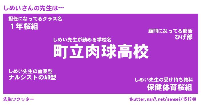 | ヘコむあだ名 | 『しめふぇ~』『牛乳』『しめっちょ』 |